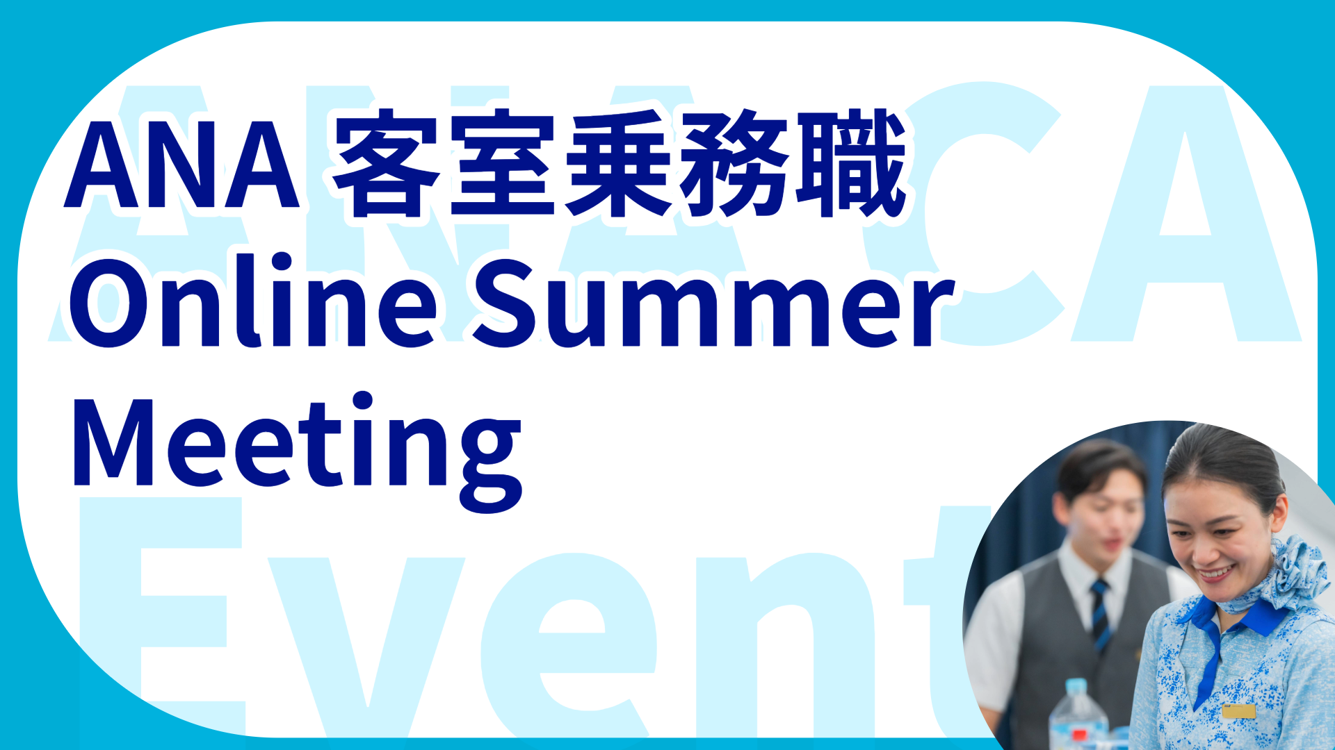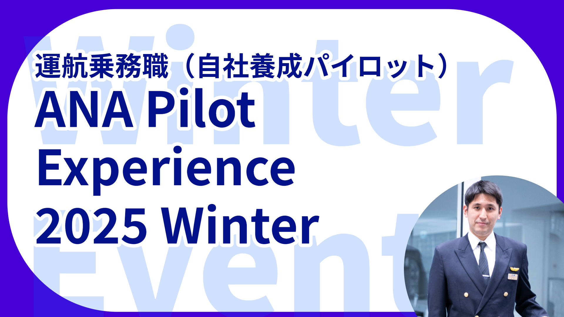 ANA CA Online Summer Meeting 募集期間:2025年5月28日(水)〜各イベント日3日前まで※先着順でのご案内となります。ご了承ください。好評につき、10月以降の追加開催決定!ANA CA Online Summer Meetingは、ANA客室乗務職として働くことを身近に感じていただけるようなプログラムです!航空業界・会社の魅力やANAブランドを体現する私たちの仕事にぜひ触れてみませんか?皆さまのご応募を心よりお待ちしております! 職種客室乗務職 応 募 新着 ANA Pilot Experience 2025 Winter(オンライン) パイロットという職業を、もっと身近に感じてみませんか?ANAがお届けするオンラインイベント「ANA Pilot Experience 2025 Winter」では現役パイロットが養成訓練のリアルや仕事のやりがい、そしてコックピットから見える景色まで、パイロットの魅力をたっぷりお伝えします。「専門知識がないと難しそう…」そんな心配はいりません。ANAの自社養成パイロットは、入社前に特別な知識や操縦資格は不要。誰もが一からパイロットを目指せる制度です。空への興味が少しでもあるなら、この機会をお見逃しなく!気軽に参加して、あなたの可能性を広げま… [more] 職種運航乗務職 応 募 新着 ANAグローバルスタッフ職 Winter Internship ~そのイメージの先へ。ANAのビジネスを動かす「人」と「情熱」を体感しませんか?~※具体的な日程や内容については、本イベントにプレエントリーいただいた方へご案内しております。 職種グローバルスタッフ職 応 募 新着 ANAエキスパートスタッフ職(障がい者採用)Winter Meeting ~ANAエキスパートスタッフ職社員が登壇し、ANAの仕事の魅力・やりがいをご紹介いたします!~※具体的な日程や内容については、本イベントにプレエントリーいただいた方へご案内しております。※他のイベントと併願いただけます。 職種エキスパートスタッフ職(障がい者採用) 応 募